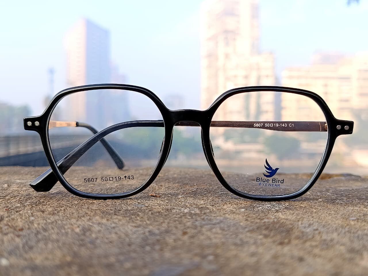 إطار أسود سداسي الشكل وأذرع معدنية ذهبية اللون من BLUE BIRD وعدسات BLUE CONTROL  للحماية من الأشعة الزرقاء الضارة الناتجة من الأجهزة الرقمية